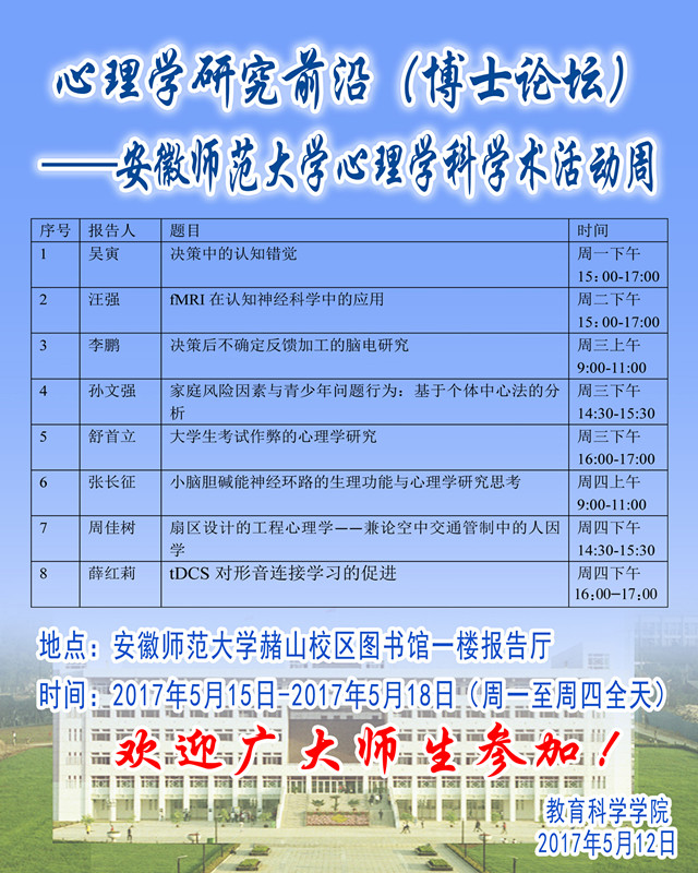 学术报告预告——心理学科学术活动周