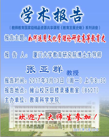 学术报告预告-厦门大学张亚群教授学术报告