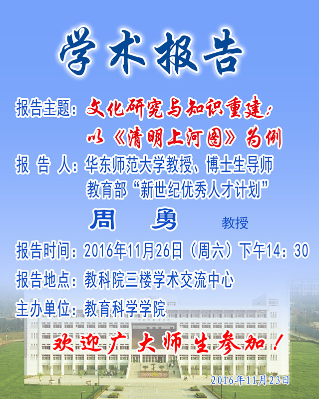 学术报告预告——华东师范大学周勇教授学术报告