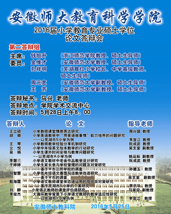 【研究生论文答辩】2016届小学教育专业硕士学位论文答辩会