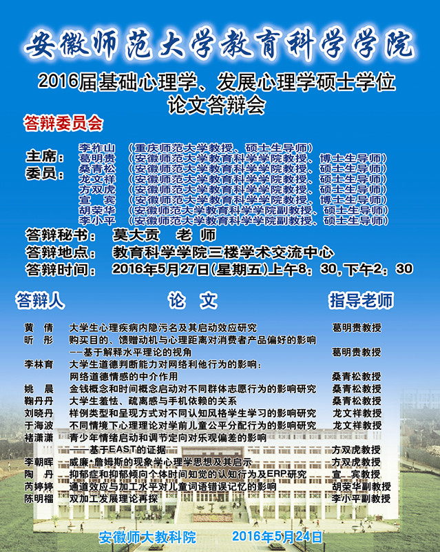 【研究生论文答辩】2016届基础心理学、发展心理学硕士学位论文答辩会
