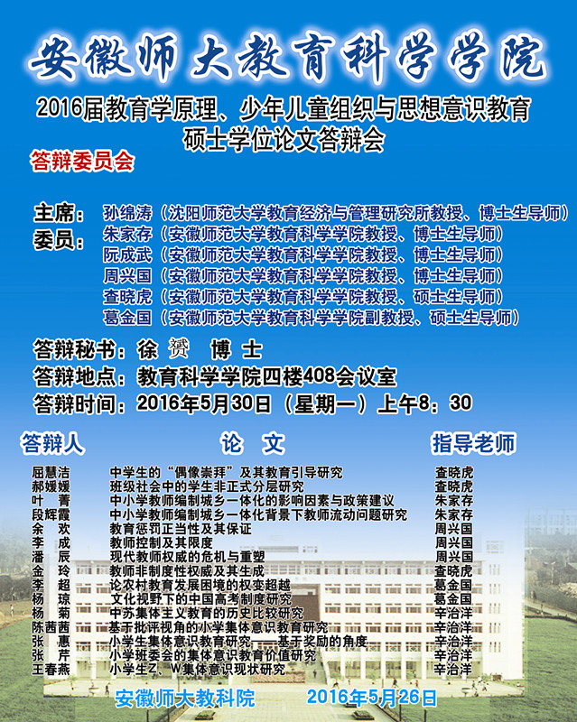 【研究生论文答辩】2016届教育学原理、少年儿童组织与思想意识教育硕士学位论文答辩会