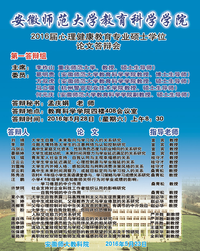 【研究生论文答辩】2016届心理健康教育专业硕士学位论文答辩会