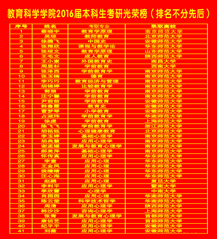 教育科学学院2016届本科生考研光荣榜