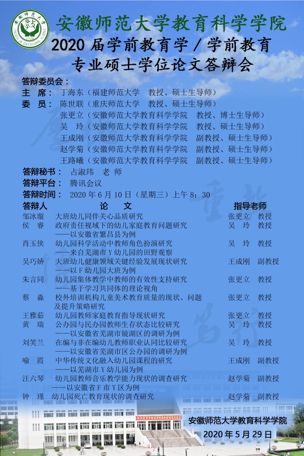 安徽royal皇家88平台2020届学前教育学/学前教育专业硕士学位论文答辩会