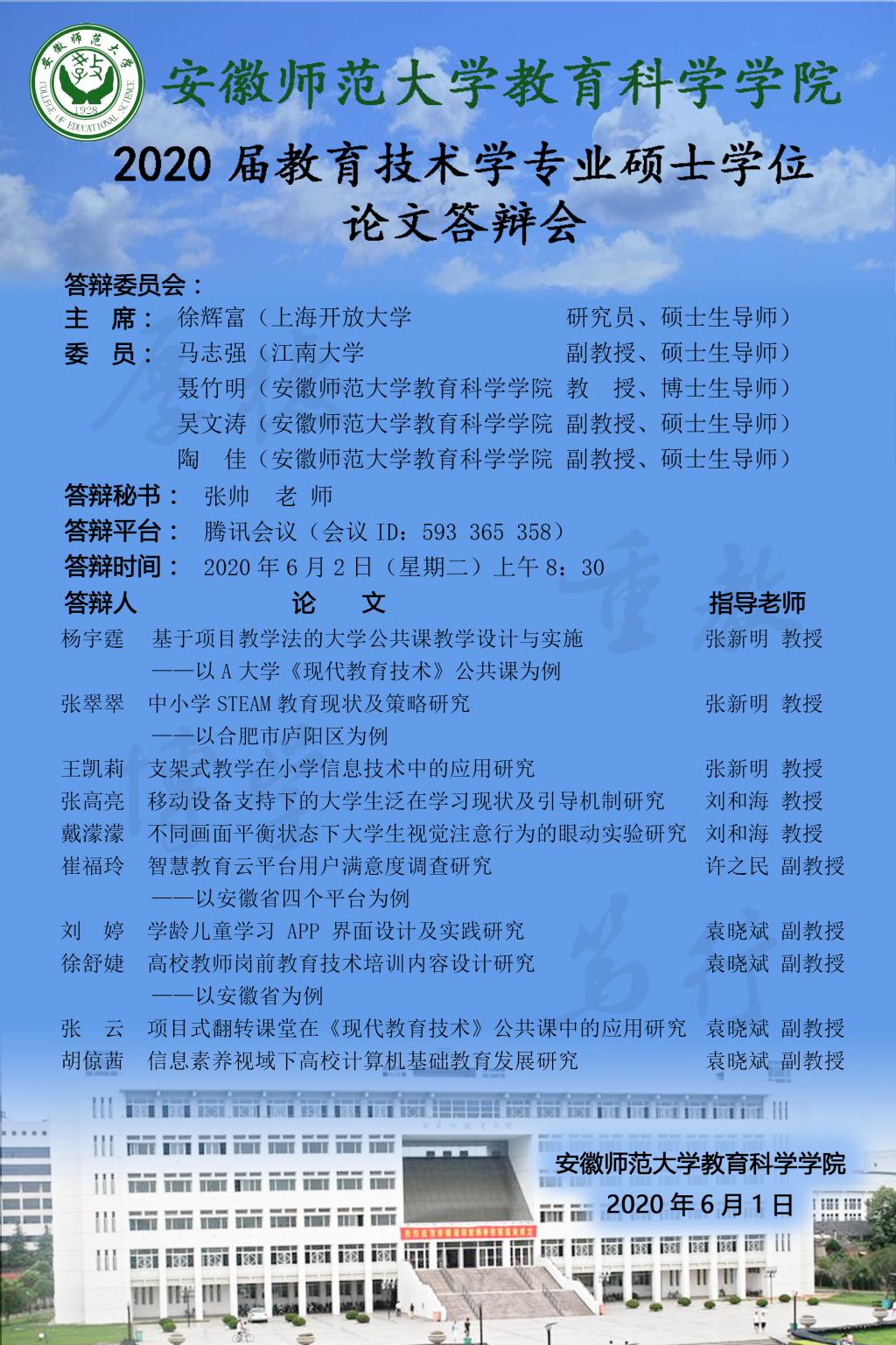 安徽royal皇家88平台2020届教育技术学专业硕士学位论文答辩会