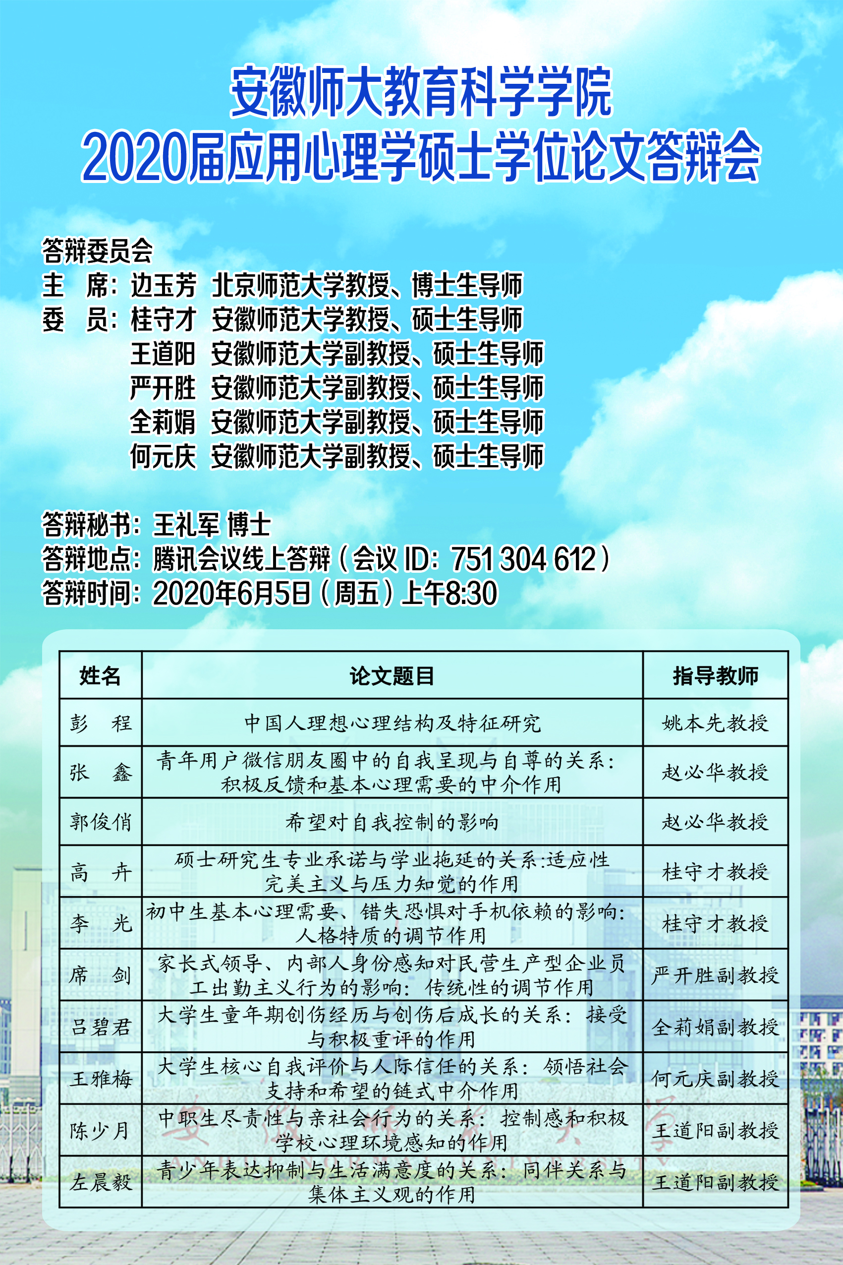 安徽royal皇家88平台2020届应用心理学专业硕士学位论文答辩会