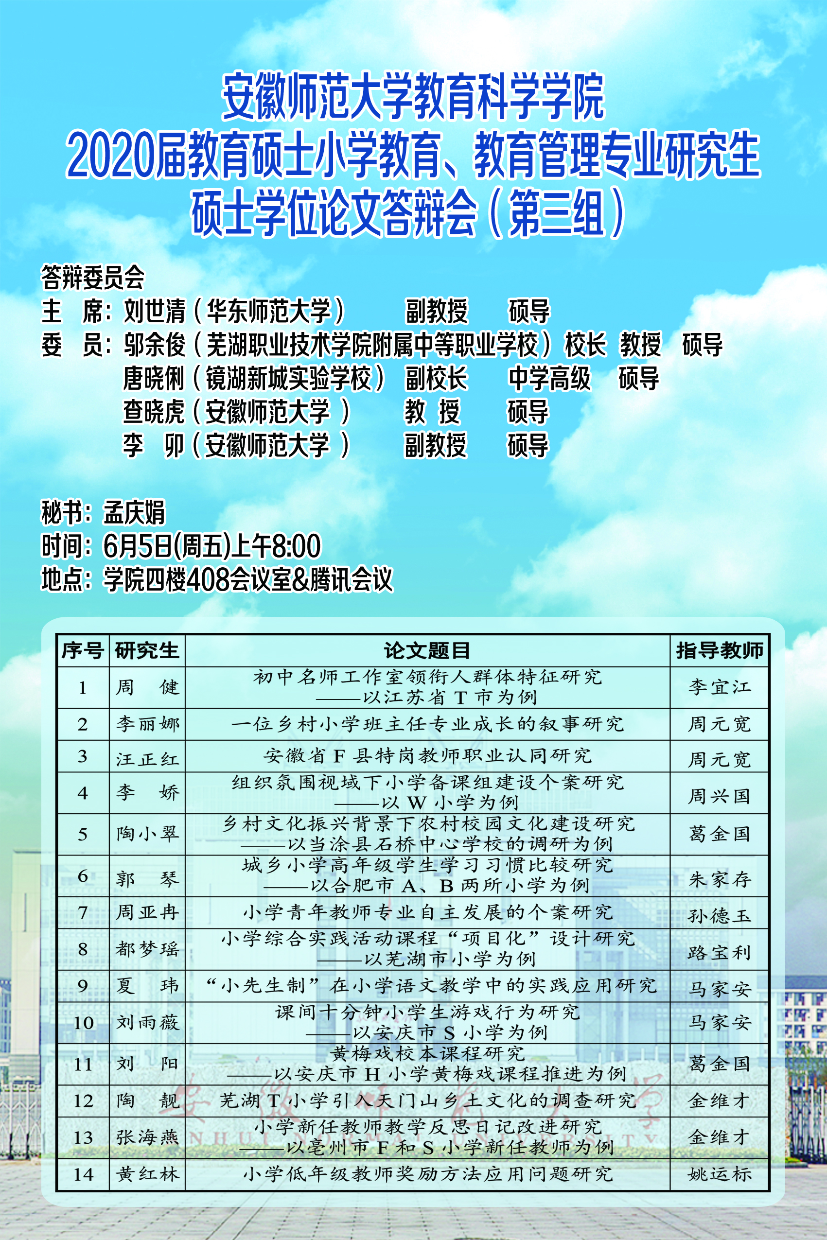 安徽royal皇家88平台2020届小学教育、教育管理专业硕士学位论文答辩会