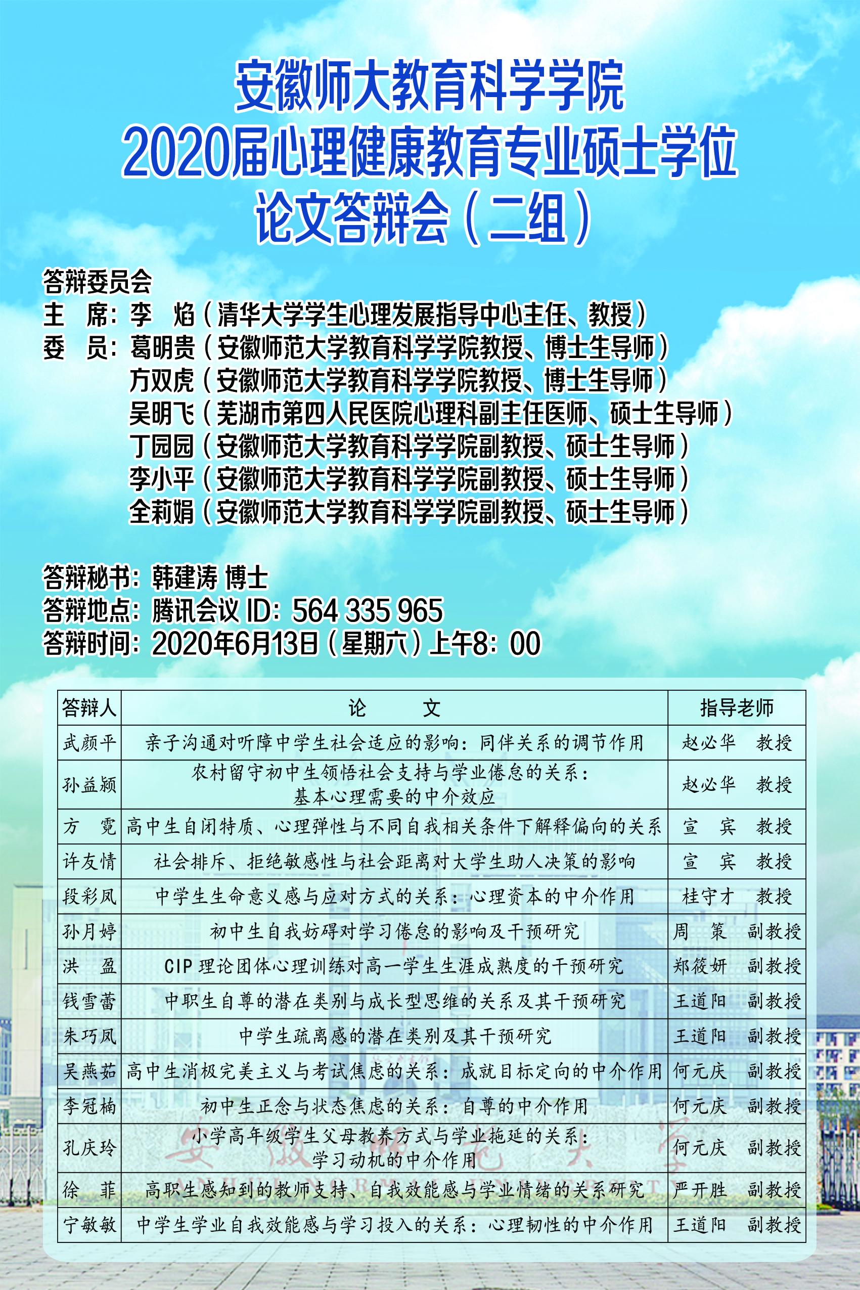 安徽royal皇家88平台2020届心理健康教育专业硕士学位论文答辩会
