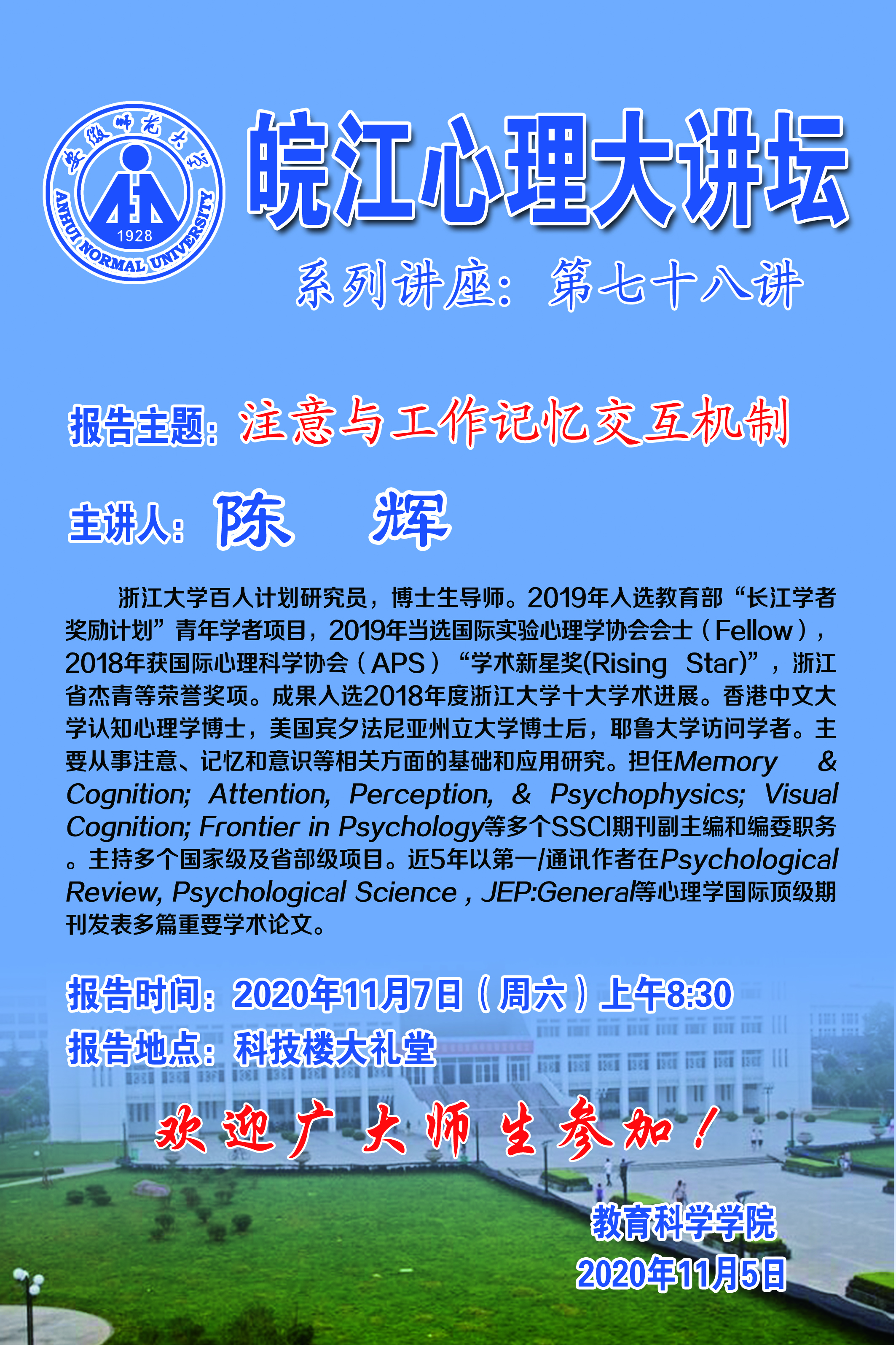 【学术预告】皖江心理大讲坛七十八讲:注意与工作记忆交互机制