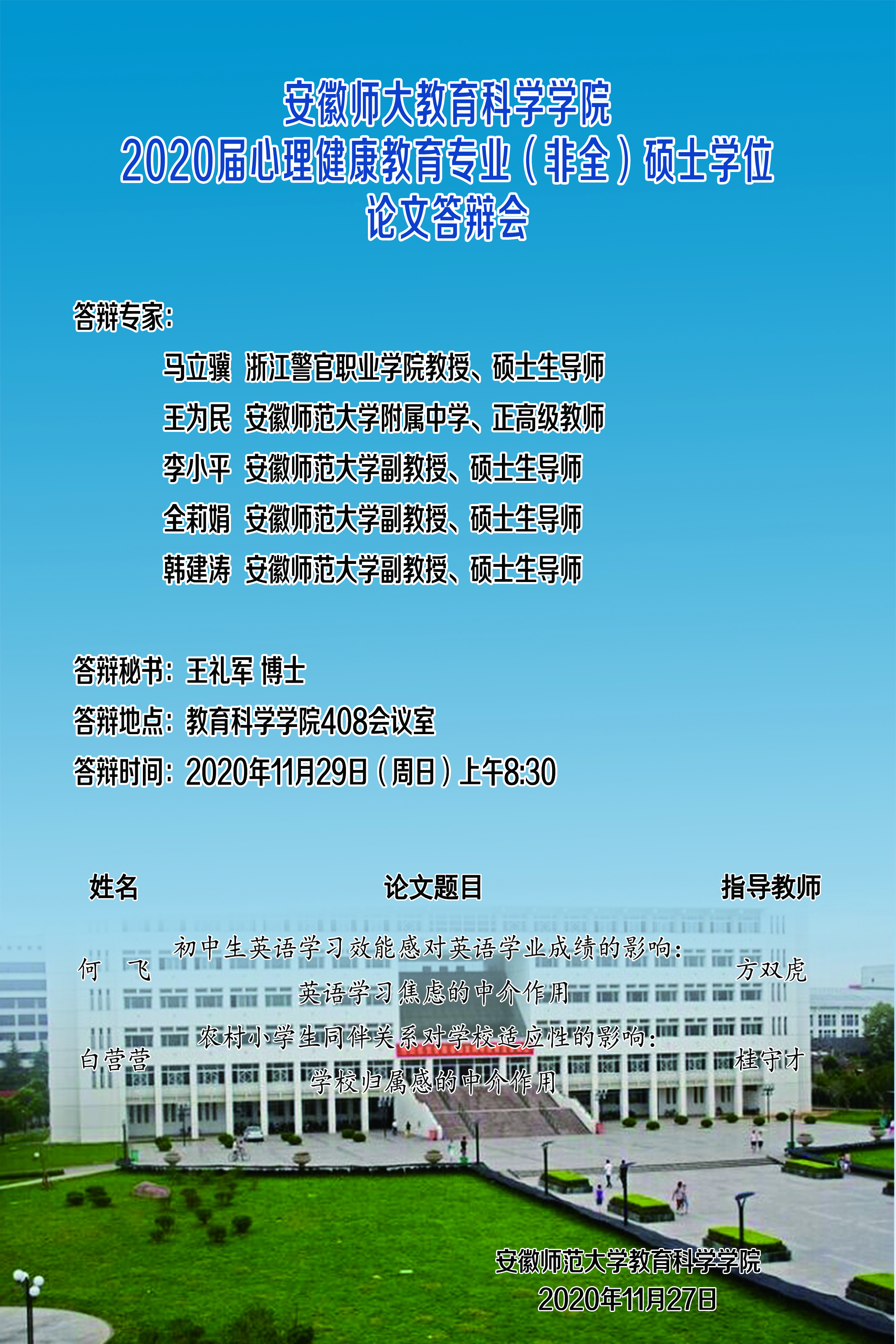教育科学学院2020届心理健康教育专业(非全)硕士学位论文答辩会