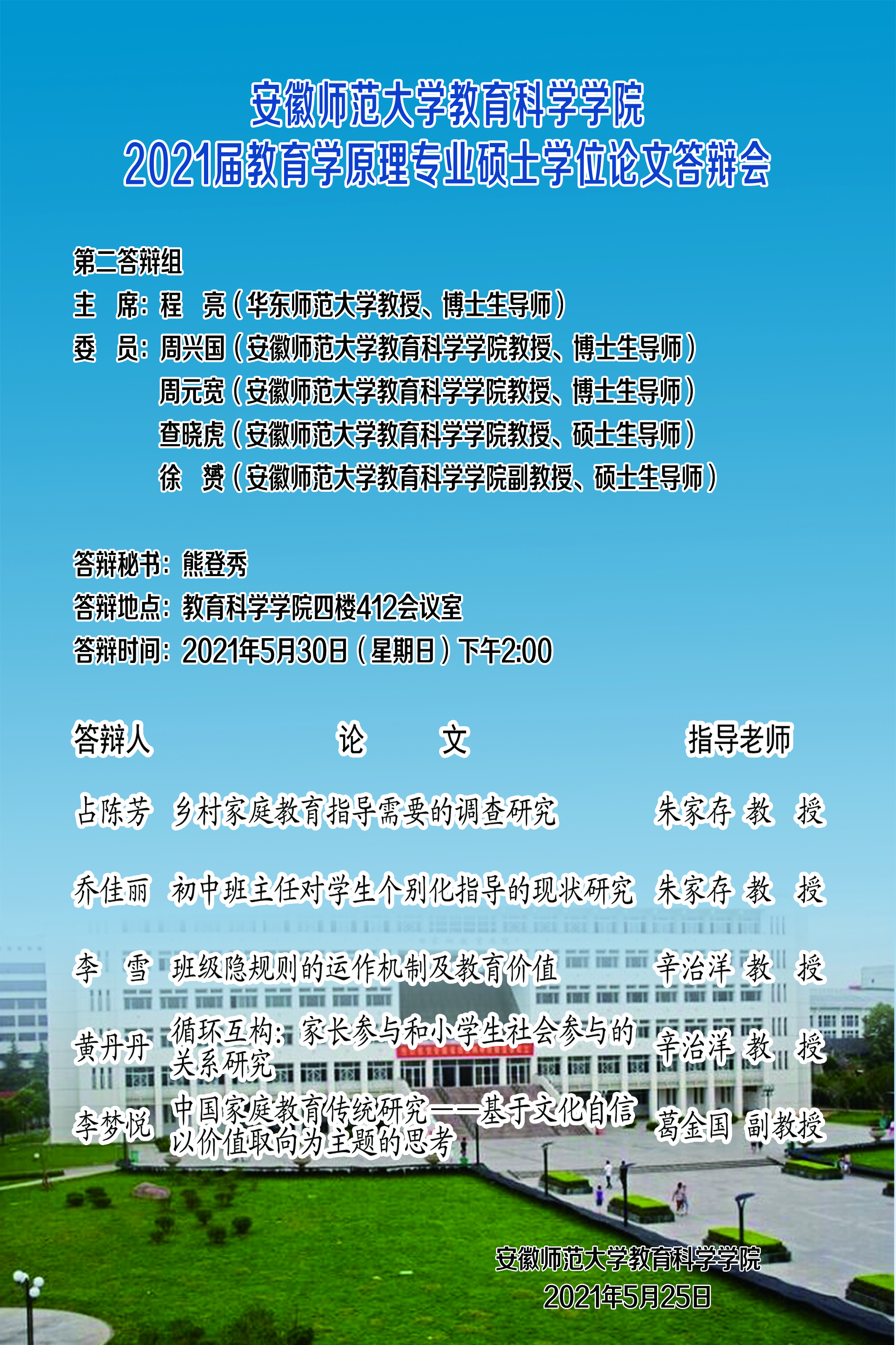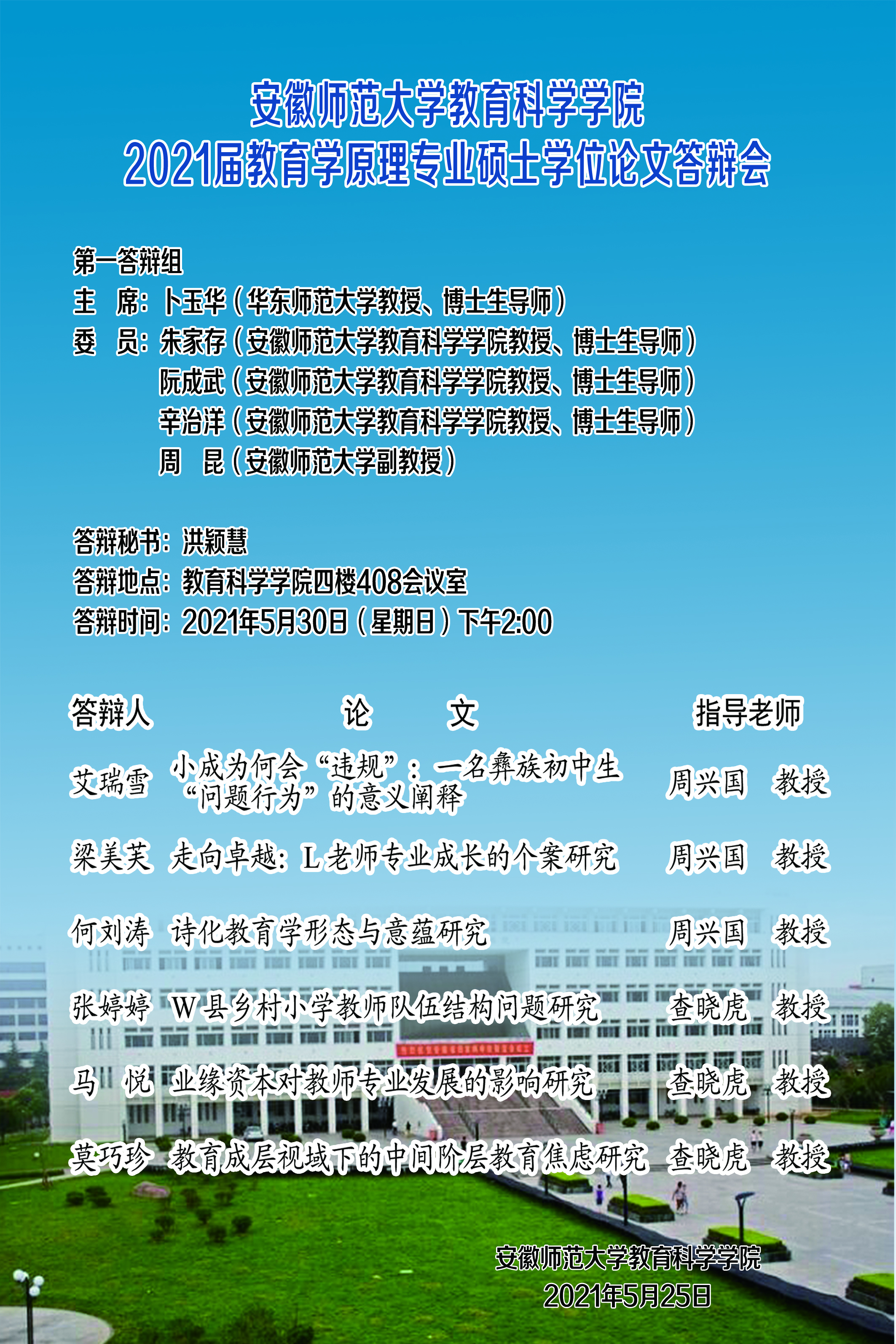 安徽royal皇家88平台2021届教育学原理专业硕士学位论文答辩会