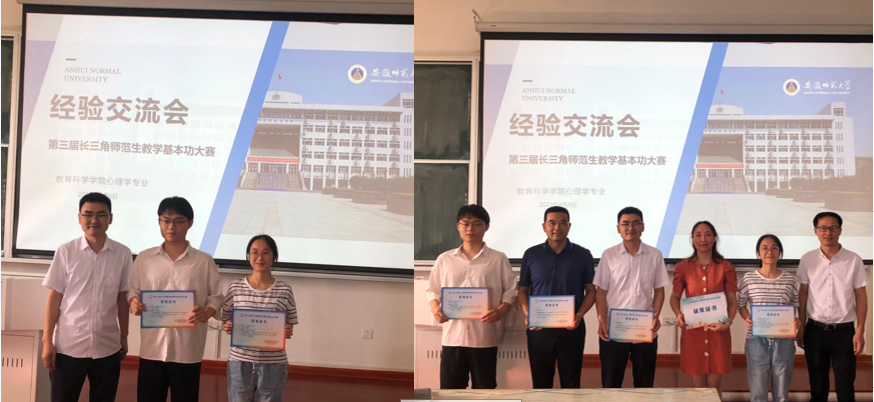 首先,王礼军老师对19级心理学专业张雪、李卓两名同学在第三届长三角师范生教学基本功大赛荣获一等奖表示热烈祝贺,两名同学一路披荆斩棘、越战越勇,从院赛、到校赛、省赛,再到长三角比赛中脱颖而出,用自己的实力和智慧取得了胜利,也证明了自己。同时,也祝贺韩建涛、全莉娟、何元庆三位指导老师,感谢三位老师培养出如此优秀的学生。随后,韩建涛老师给两位获奖学生颁发获奖证书,王礼军老师给三位指导老师颁发荣誉证书。