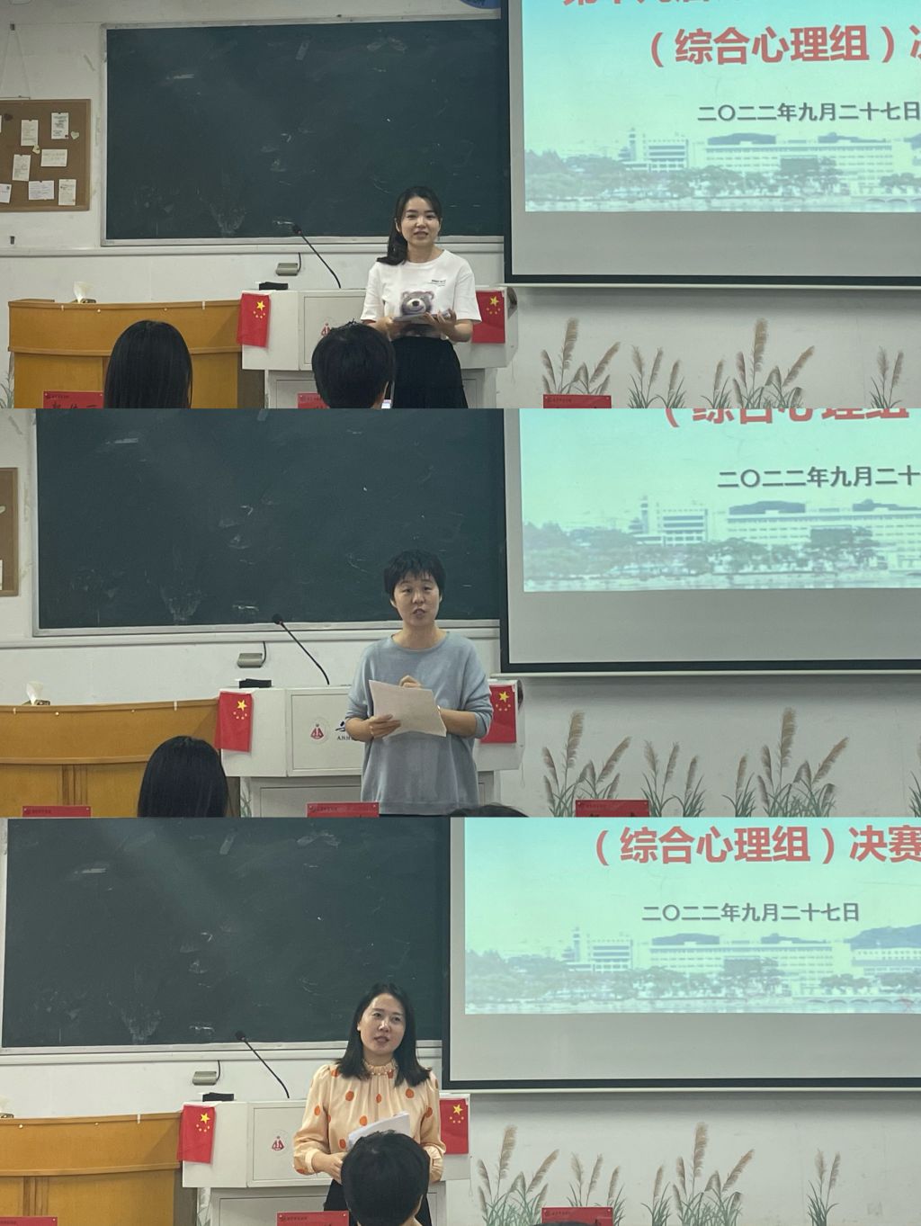 9位同学汇报结束后,三位评委老师分别对他们的说课和授课作出了精彩、专业、具体的点评与指导。评委老师首先肯定了参赛同学的良好教学素养和精彩表现,感谢同学们用自己的精心准备为在场的师生奉献了一场视听盛宴,并针对同学们在教学主题的选择、教学内容的创新、教学风格的呈现和板书设计的提升等方面提出了宝贵建议,尤其强调心理健康课不同于道法课,要有“心理味”,要立足于学情展开教学设计。最后,评委老师根据同学们的综合表现评定出一二三等奖。