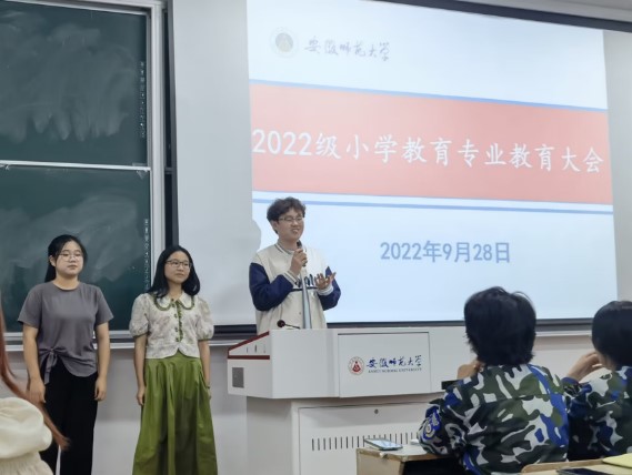 百年大计,教育为本;教育大计,教师为本。本次新生见面活动使同学们明确了自己的方向,埋下了助力乡村教育事业的种子,厚植了爱国、爱校、爱家的情怀,提高了学习热情,也展现了教育科学学院注重小教专业建设的教育理念。2022级小学教育新生将不负学院的培养,在老师们的指导下夯实专业基础,努力成为师心恒坚、师德崇高、师能过硬的未来小学教师。