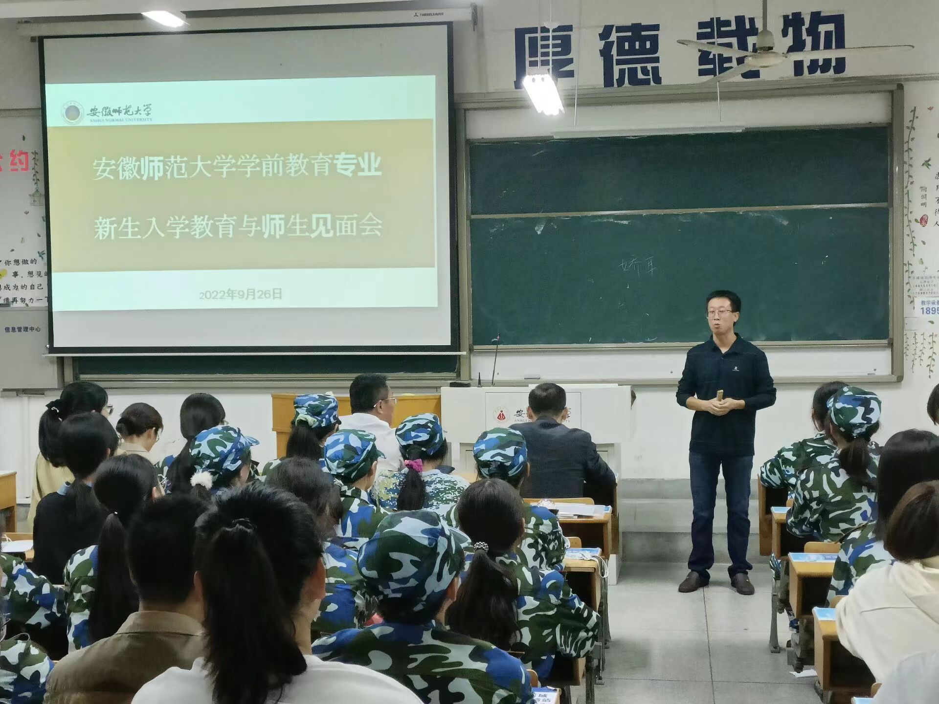 本网讯(教科院)2022年9月26日星期一晚7点,学院2022级本科生师生见面会在田家炳教育书院202教室顺利召开。学前教育学院副院长张更立、吴玲、孙德玉、朱立新、赵学菊、童慧玲、王萍、王成刚、张志华、王芬莲、陈海燕、李晓博、翟清华、李毅恒、刘婉等教师和2022级全体学前教育专业本科生参加本次会议。会议由学前教育专业负责人王成刚老师主持。