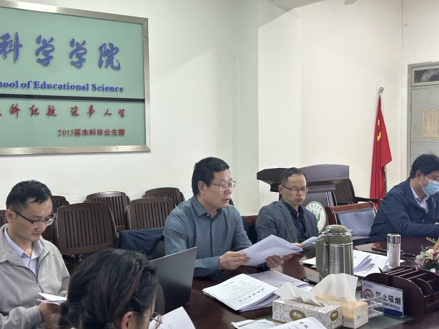 本网讯(文/张思雪 图/邱鑫)2023年5月7日,教育学专业在学院楼308举行2021年度大创项目结题答辩会。段兆兵、孙德玉、杨俊铨、闵韡、陈晨五位老师作为评审专家,19级教育学专业全体同学参与,会议由孙德玉老师主持。
