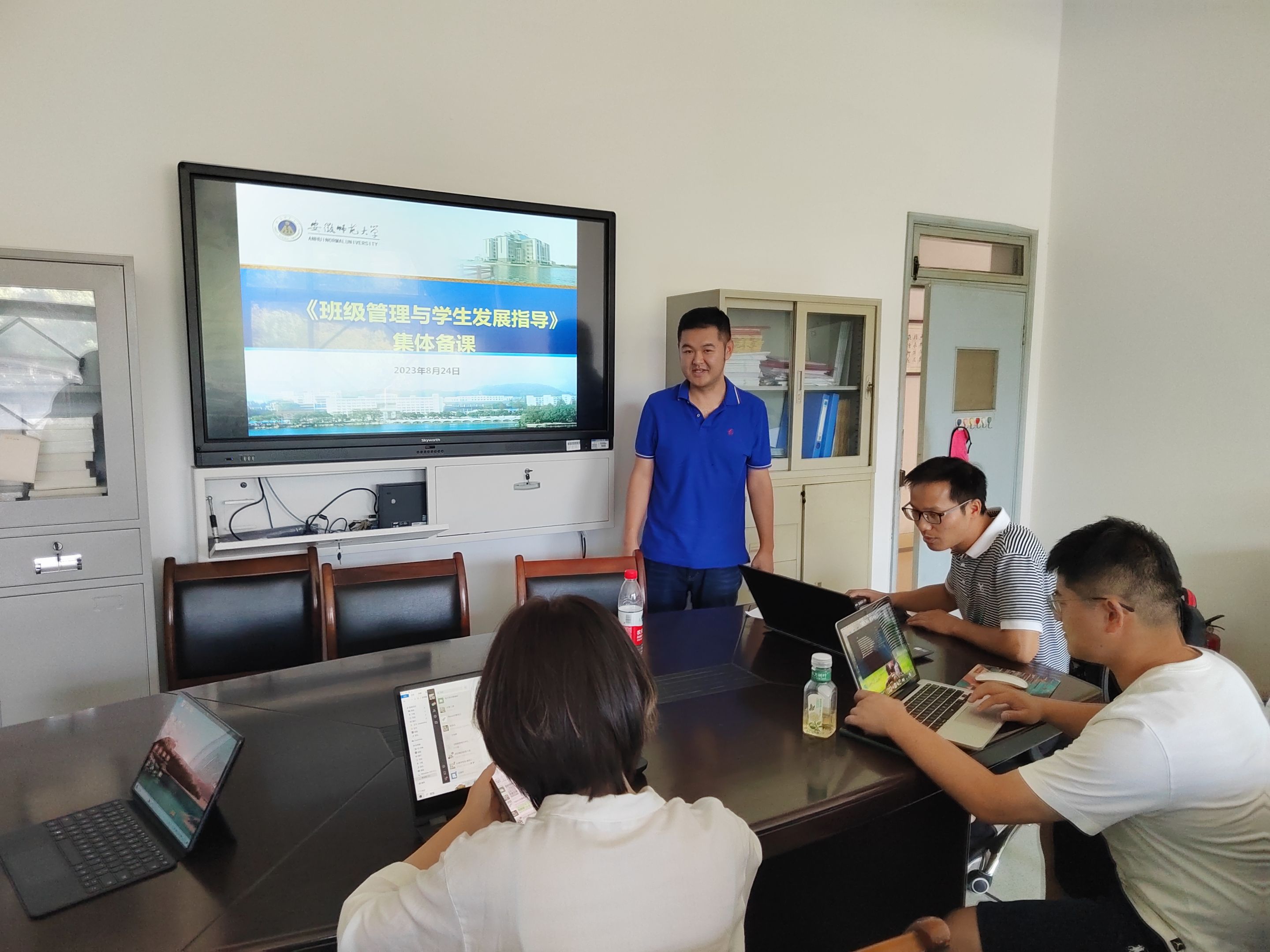 会上,主持人从课程目标、课程大纲、教学课件、基本内容和载体手段着手,介绍了《班级管理与学生发展指导》课程内涵,指出课程的根本目的是促进中小学班级管理工作和班主任的专业发展,提高班级管理的针对性和实效性。参会教师分别汇报了暑期备课情况,并对每一章节的具体内容进行了深入地交流。