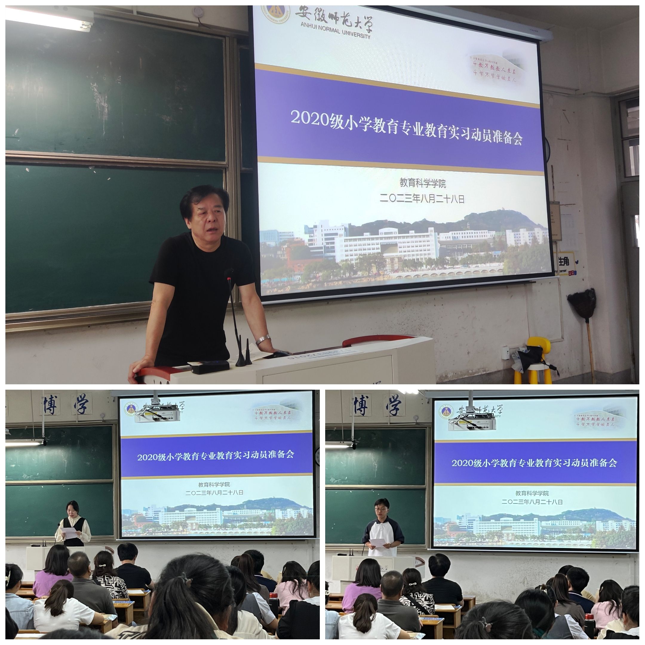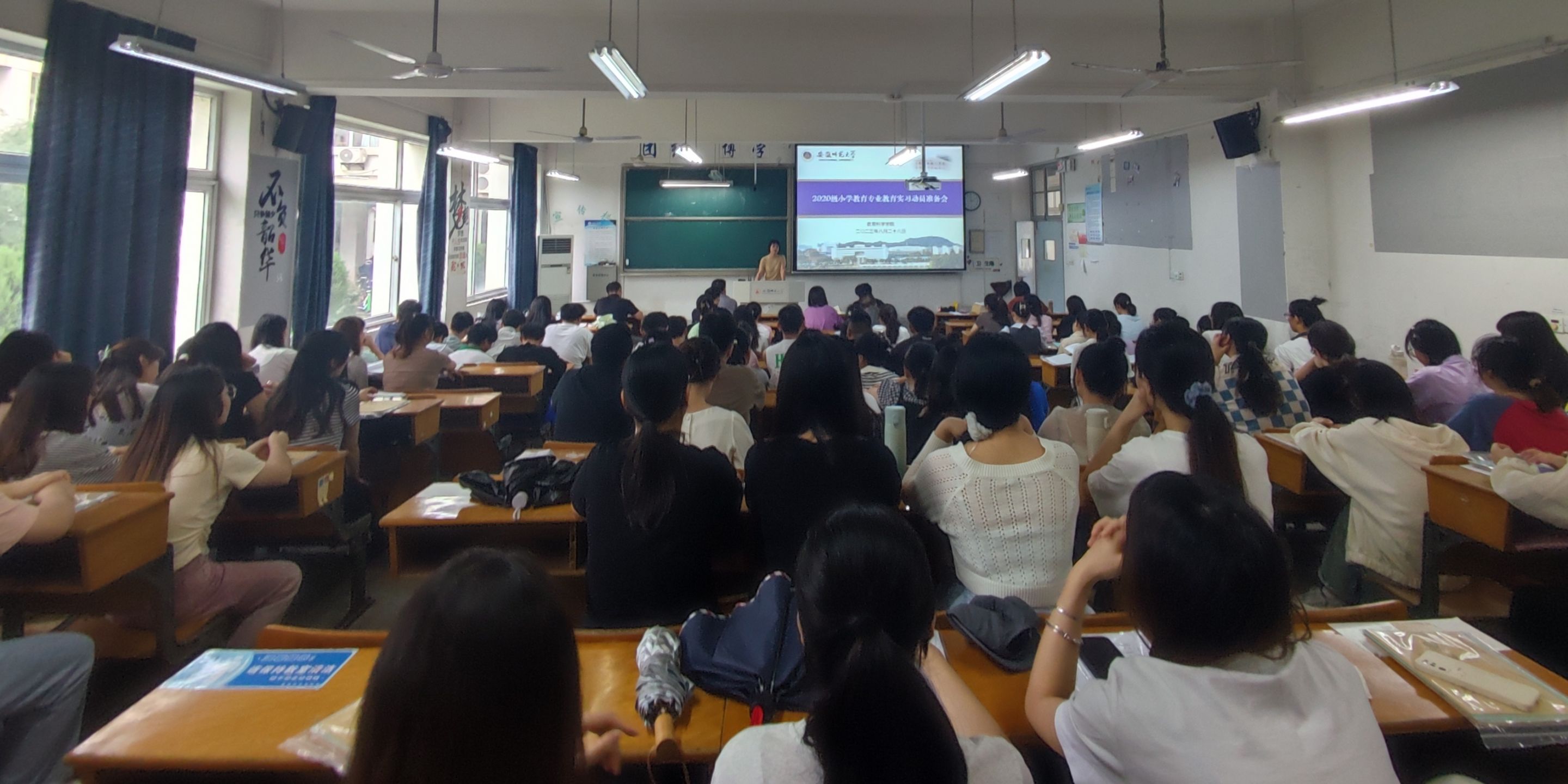 为保证教育实习工作顺利开展,8月28日下午3时,2020级小学教育专业在田楼8101教室召开教育实习动员准备会,学院教学副院长韩建涛、专业负责人王芳、实习指导老师、班主任老师、辅导员莫大贡以及2020级小学教育全体同学参加了本次会议,会议由莫大贡老师主持。