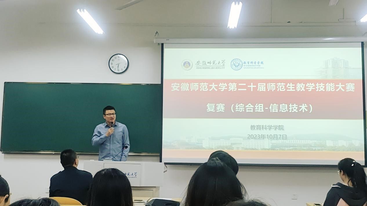 为进一步夯实师范生教学技能,提高师范生教育教学能力,10月7日晚,教育技术学专业在教学楼1507教室顺利开展安徽师范大学第20届师范生教学技能竞赛复赛(综合组-信息技术)。本组比赛由教育科学学院承办,21级全体本科生参加了初赛,21与22级教育技术学全体本科生现场观摩了复赛。比赛特邀芜湖市教科所信息科技学科教研员葛萱、安徽师范大学附属中学顾学雷老师、利民路小学信息办主任李长生主任作为大赛评委。