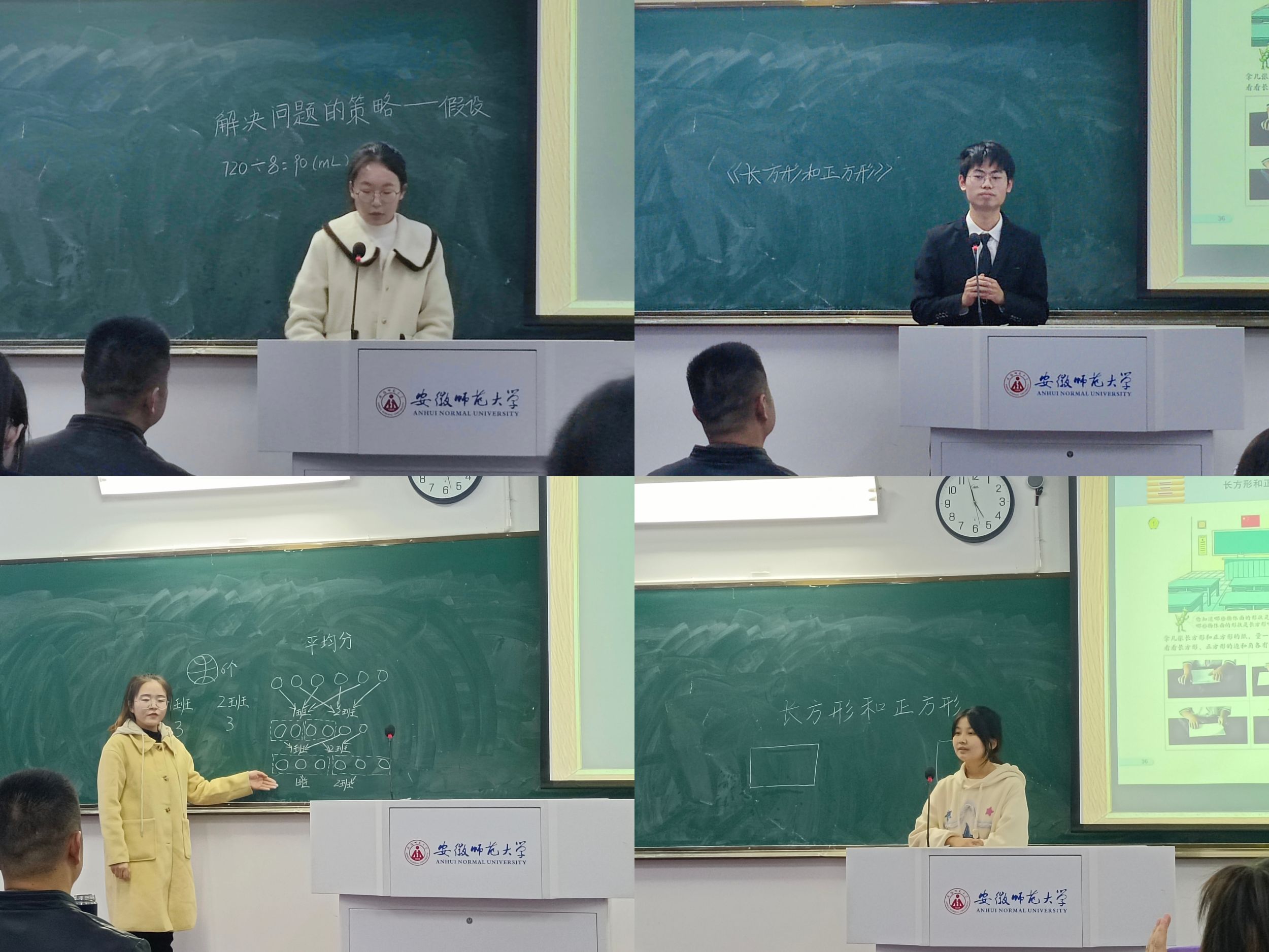 数学学科由戴之兵老师主讲,聚焦《小学数学教师的无生上课》这一主题,戴之兵围绕“什么是无生上课”“小学数学的主要教学内容”“怎样进行无生上课”“几个注意事项”四个环节逐一展开讲解。其中,他着重讲解了数学的框架,建议同学们针对每类题型做好充分准备。立足无生授课,他指出三个关键点:试讲时眼神不能飘忽不定、避免频繁地来回走动、互动时应停顿两秒。无生授课环节,由徐天赐、乔琳颖、孟勤勤和刘银萍四位同学上台展示。戴之兵在点评时指出,课题板书应往高处写,试讲应以谈收获为结尾。其次,他强调授课的难点在于对课本材料的解读,要将材料中题目思路讲解清楚,避免过度向外拓展。
