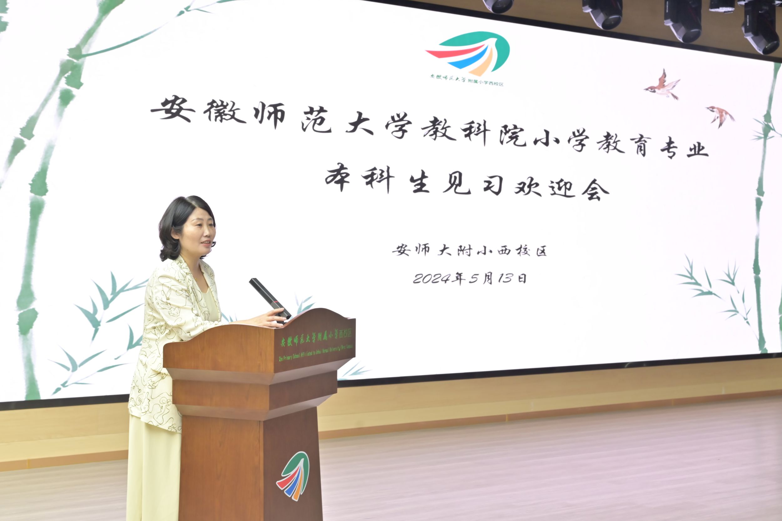 下午,课堂教学观摩结束后,安师大附小西校区的卢校长就学校校园文化建设和校本课程实施管理等方面开展专题讲座,分享了学校坚持以“陶行知‘生活教育’思想”为理念、为孩子终身发展奠基的办学经验。王芳对此次活动的开展给予了高度评价,并表达了对师大附小为我们小教专业学生提供良好见习平台和机会的诚挚谢意。她希望同学们能够珍惜机会,在见习中学有所获,不虚此行。
