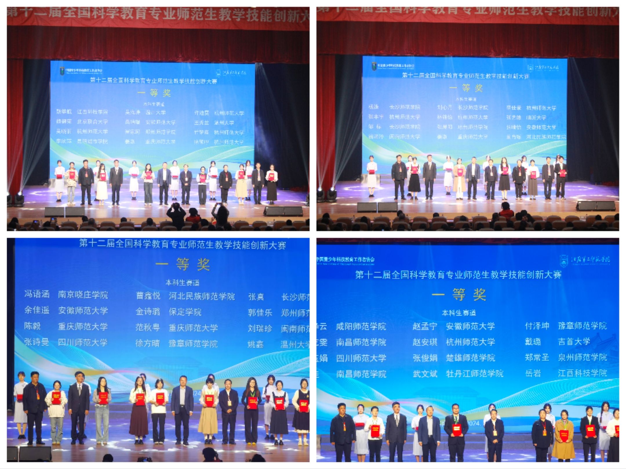 全国科学教育专业师范生教学技能创新大赛旨在加强科学教师创新精神和实践能力的培养,推进学前与小学科学教育的贯通,不断提高我国科学教师的培养质量,为科学教育、小学教育和学前教育等相关专业师范生提供展示专业素养和教学技能的平台。本届大赛分初赛和决赛两个阶段,初赛共收到来自全国105所高校的1190名选手提交的教学设计、教学视频和科学活动方案,经资格审查及初评,最终共有来自504名选手入围决赛。决赛采用现场比赛的方式进行,包括即兴演讲、模拟授课和评委提问三个环节,最后综合评分并按照参与决赛人数的30%、35%、35%评出一、二、三等奖。