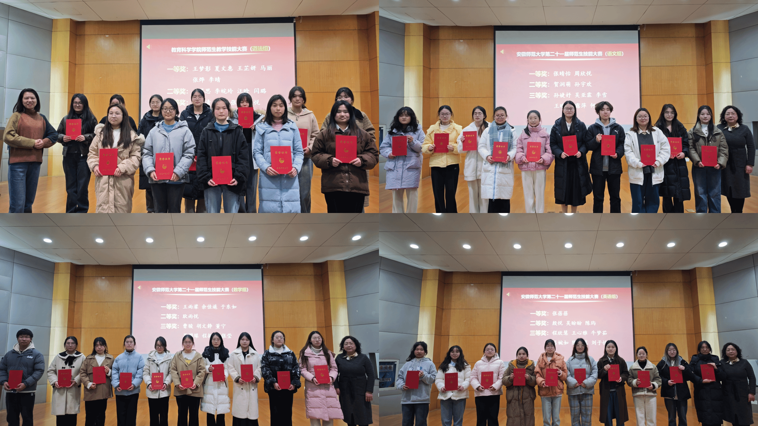 本次颁奖典礼分设六个项目,分别授予在教育实习、学院师范生技能大赛、安徽师范大学第二十一届师范生技能大赛、第六届长三角师范生教学基本功大赛、第十二届全国科学教育专业师范生教学技能创新大赛、第十届“田家炳杯”全国师范院校师范生教学技能竞赛中表现优异的同学,共143人次,其中获省级以上各类教学技能大赛一等奖6项、二等奖5项、三等奖3项,创历史最好成绩。每一个获奖者都面带笑容,洋溢着自豪和喜悦,他们用勤奋和汗水,换来了这份荣誉,给专业增添了更加动人的亮色。