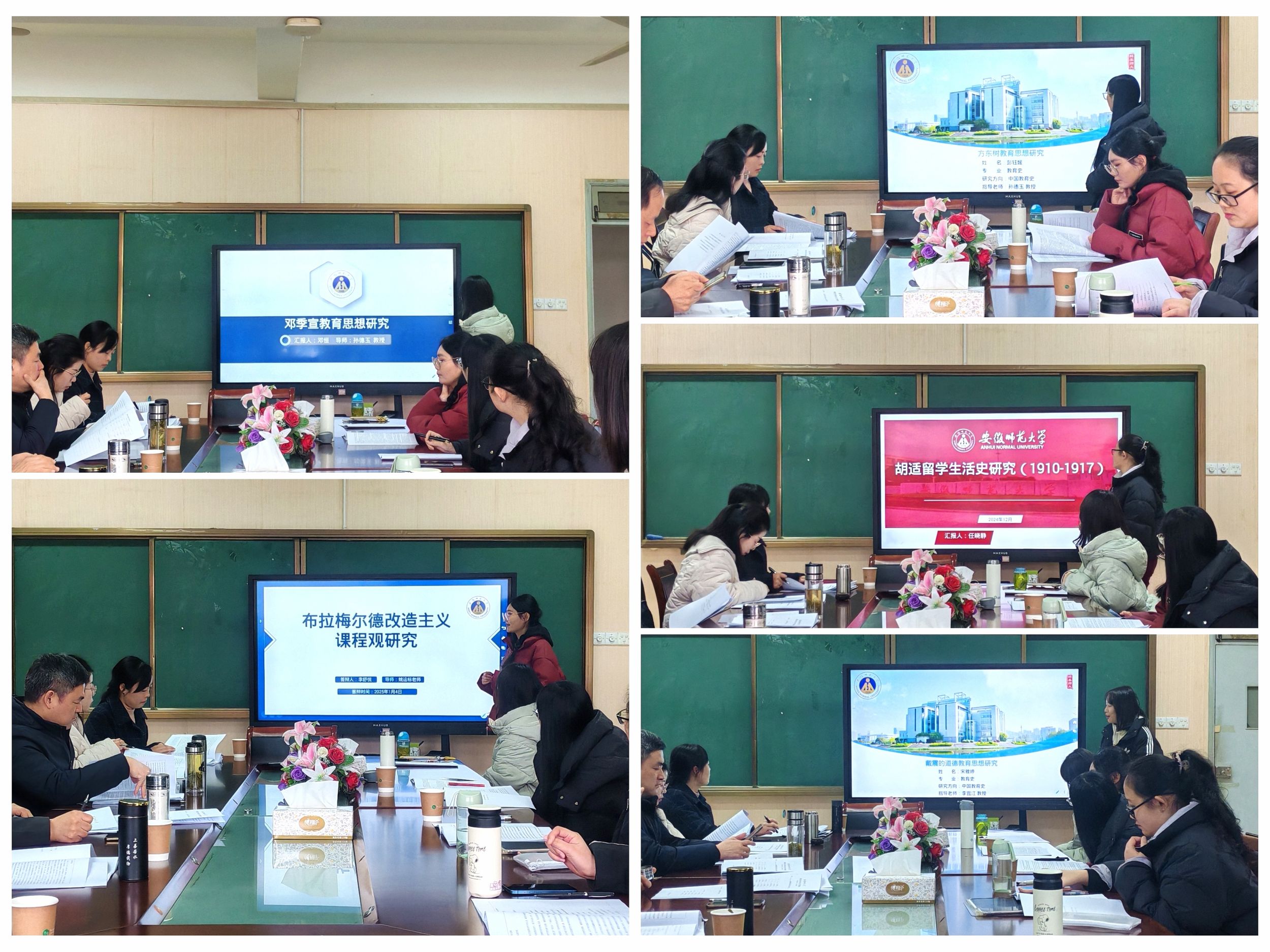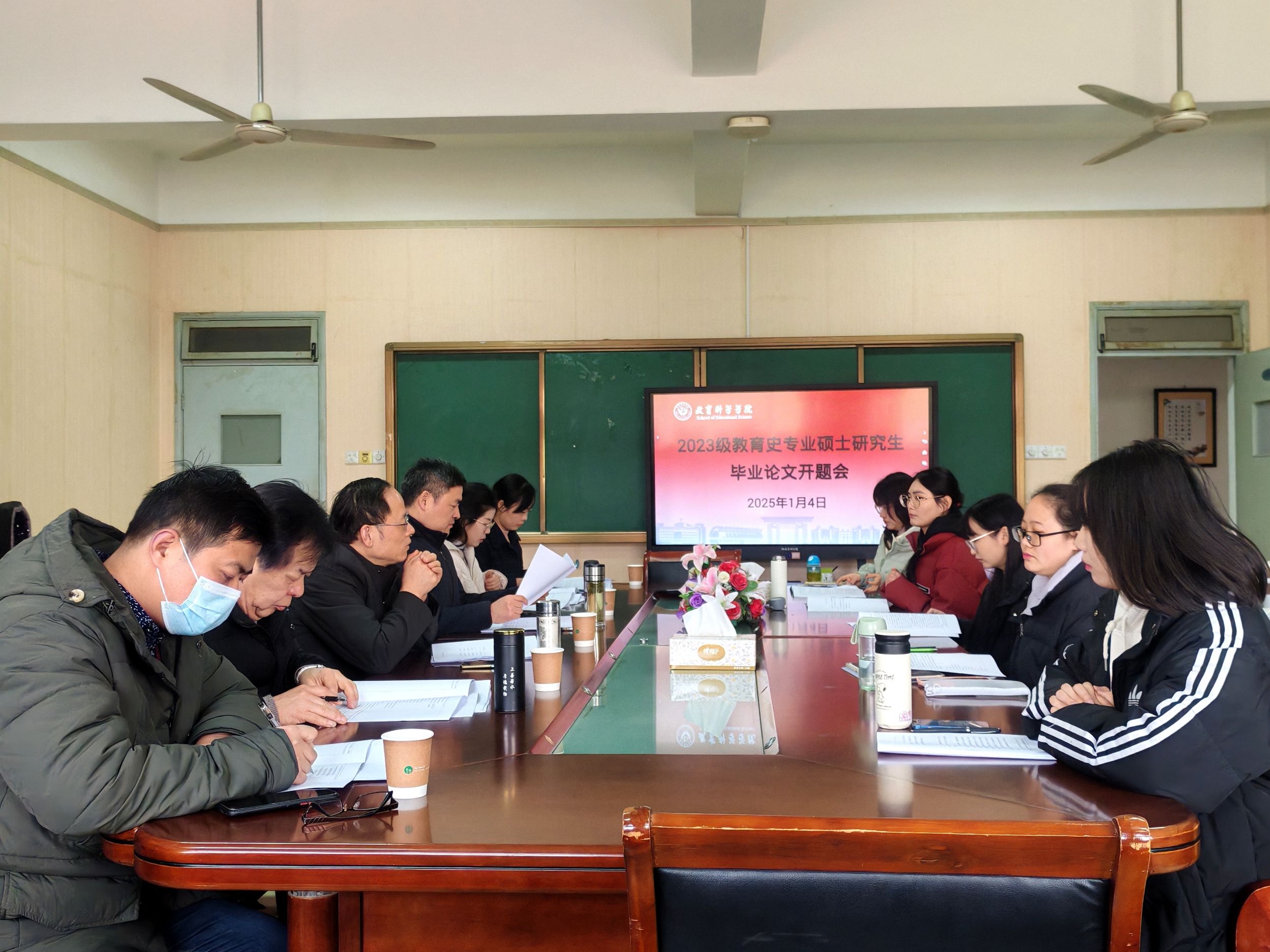 2024年1月4日下午,2023级教育史专业硕士研究生毕业论文开题报告会在学院408会议室召开,孙德玉、李宜江、姚运标、杨俊铨、刘婉、苏明明等老师担任评审专家,会议由孙德玉老师主持。除参与本次开题的硕士研究生外,2024级教育史专业硕士研究生与部分本科生旁听。