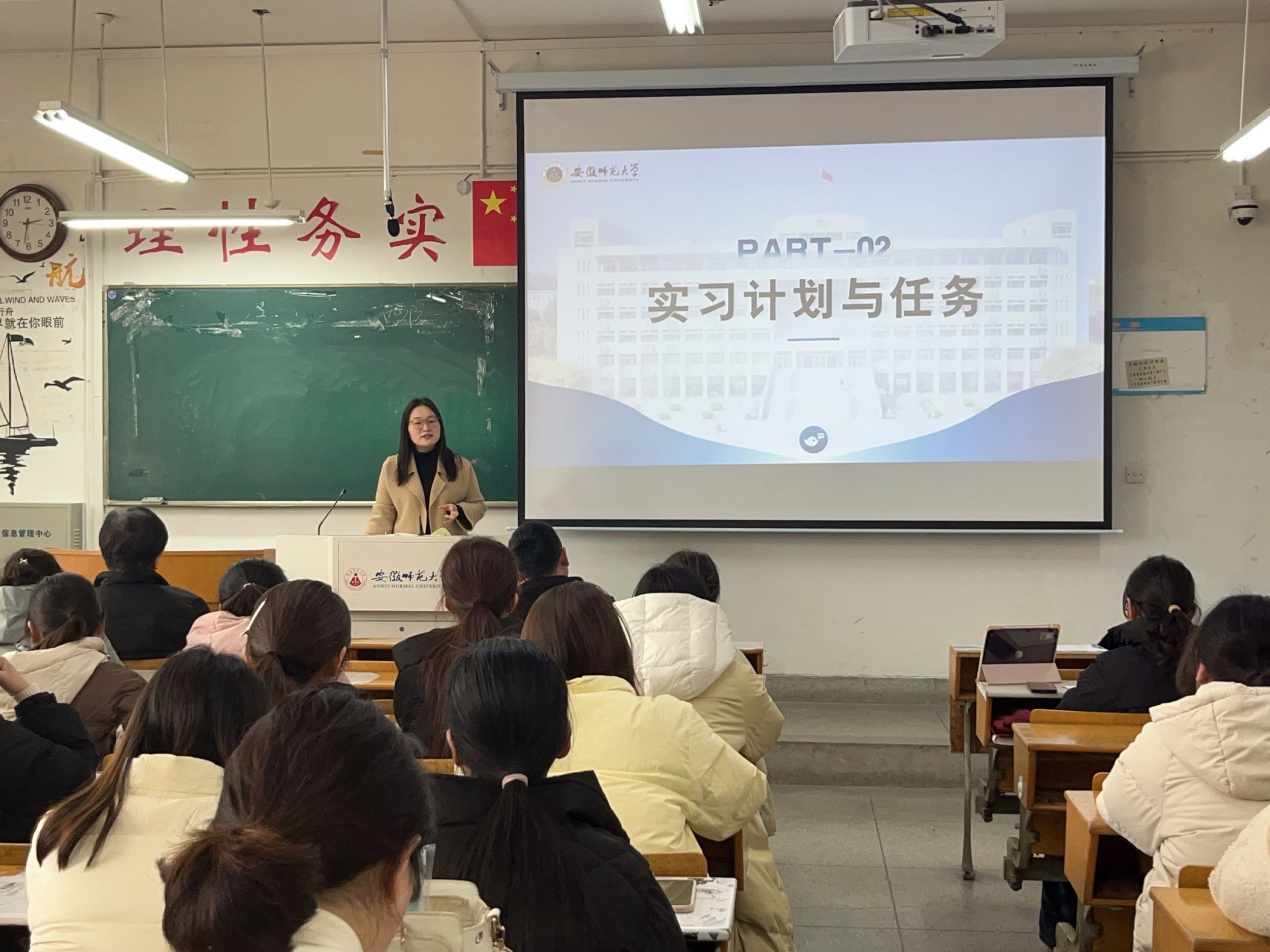 2024年2月21日下午14:20,安徽royal皇家88平台2022级小学教育(复合型)专业全体本科生在田楼8203教室召开教育实习动员大会。教学副院长韩建涛、专业负责人陈娜、辅导员程雅楠以及姚运标、杨俊铨、魏晓敏、江珊等指导老师参加会议。大会由学习委员桂星雨主持。