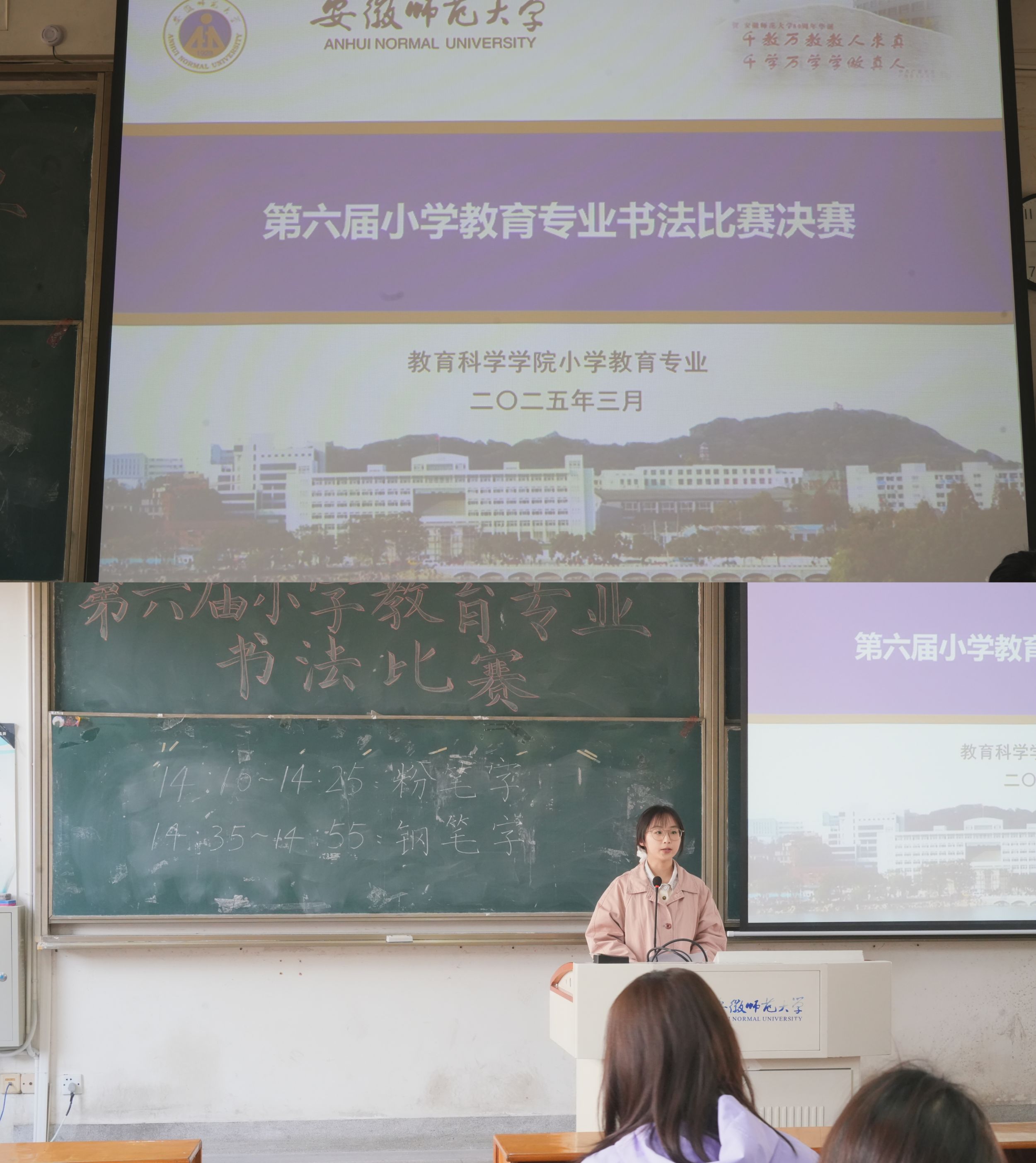 为提高小学教育专业同学的汉字书写水平,增强专业素质,2025年3月19日下午,教育科学学院小学教育专业第六届书法比赛分别在赭山校区田家炳教育书院8101教室顺利举行。本次活动在专业负责人王芳老师指导下,由2022级小学教育(全科型)班委成员负责组织,小学教育专业同学报名参加。