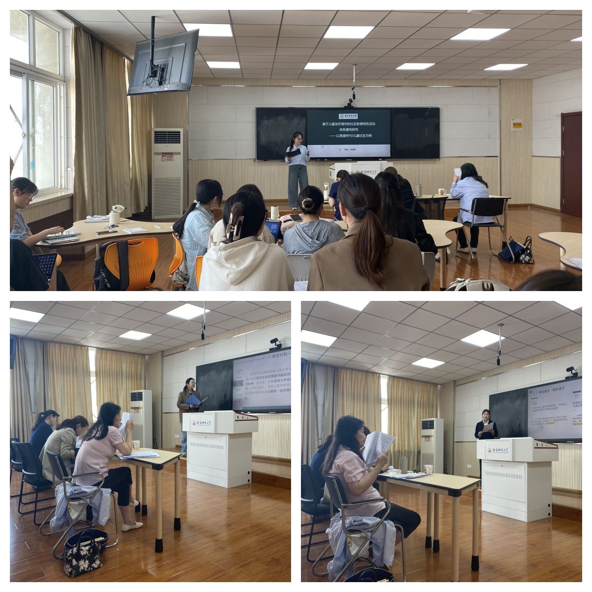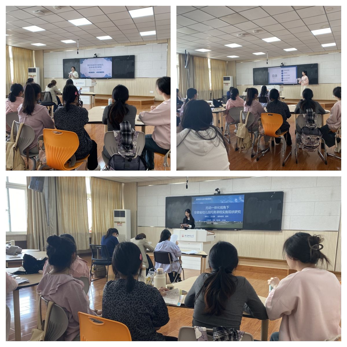 开题汇报的六位成员余欣、蒋雨雯、王仪静、尤冰洁、吴金翠、沈梦谣依次围绕《美术活动中大班幼儿的自我评价研究》《幼儿园背景音乐在幼儿一日生活中的应用现状研究》《托幼一体化视角下安徽省幼儿园托育课程实施现状研究》《知识类图画书阅读对大班幼儿学业语言的影响研究》《 基于儿童视角的幼儿园空间环境创设》展开汇报,项目研究内容覆盖广泛,研究方法各不相同。各位老师在听完每个小组汇报后,围绕相关项目展开提问,并针对每个项目选题的可行性、题目的表述、研究对象的选择、研究方法的使用、以及可能在研究中遇到的问题困难等方面进行了细致点评与深入指导,为项目成员后续研究的开展指明了改进方向。