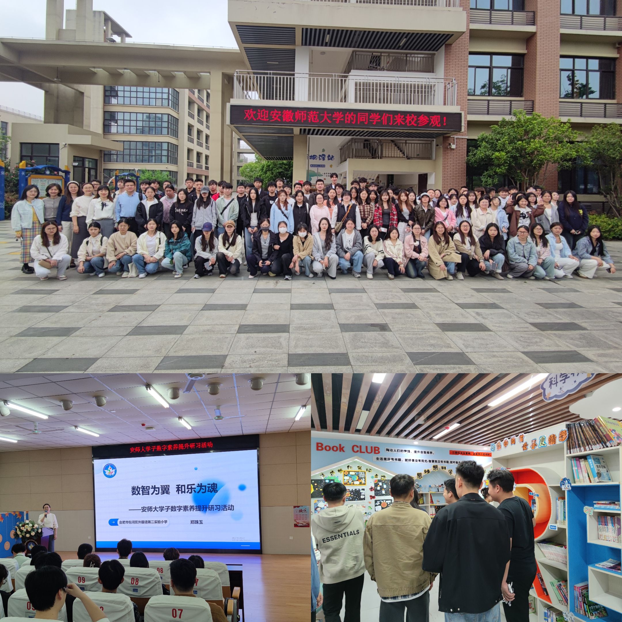 见习活动还前往合肥市外国语第二实验小学,该学校是合肥市包河区智慧学校和教育的优质示范学校,同学们参观并了解了该学校的智慧教育建设情况。学校老师向同学们介绍了该学校的发展历程、智慧教育特色分享以及数字化教学工具的应用,并给同学们观看了智慧教育课堂的实录。同学们观摩了智慧教育系统的演示和应用,深入了解了其在教学、管理、服务等方面的实际运用效果,为数字素养的提升打下坚实基础。