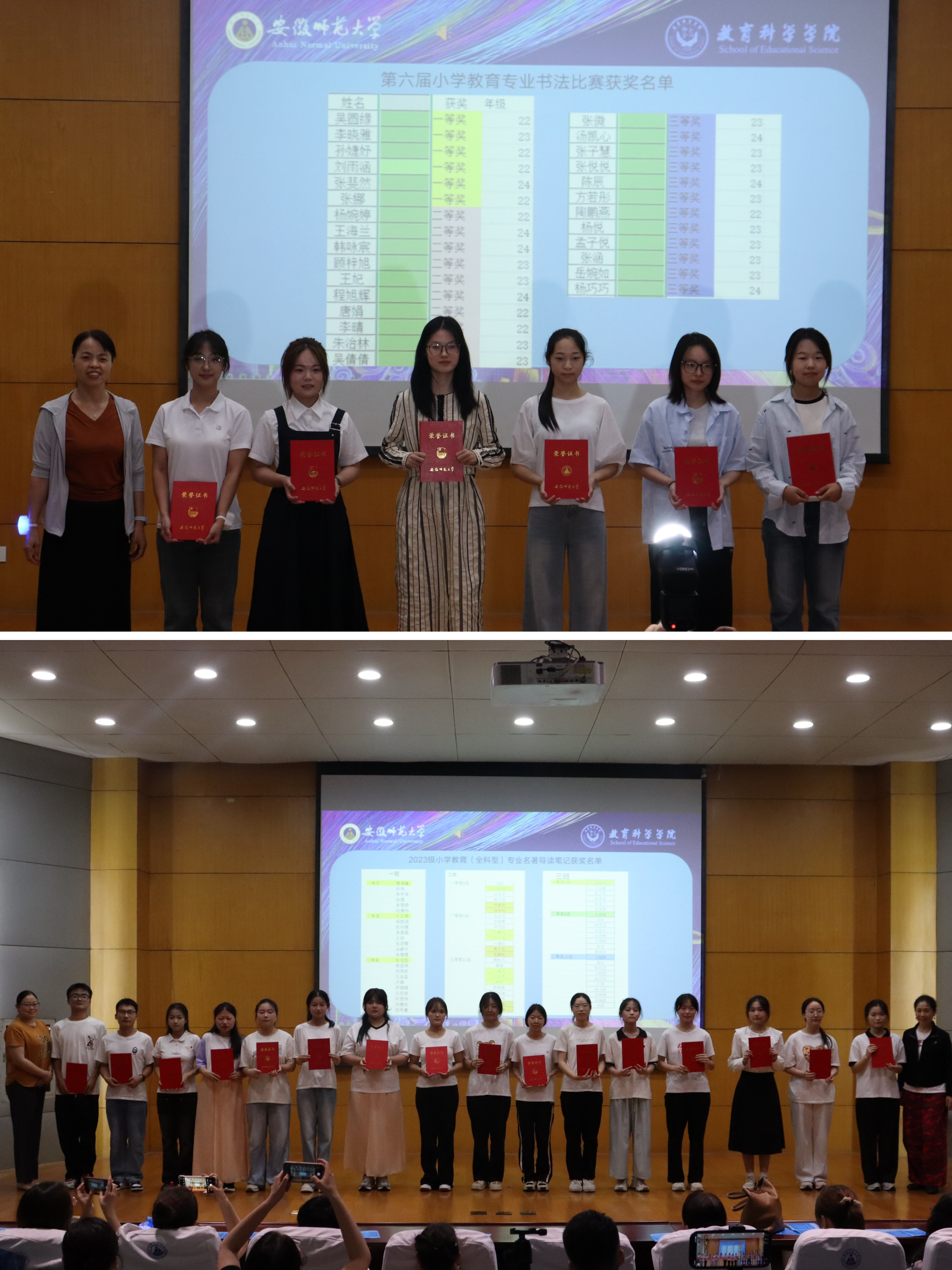 活动特别安排了激动人心的颁奖环节。在热烈的掌声中,小教专业第六届书法比赛和名著导读笔记评选获奖的学生走上领奖台,接受属于她们的荣耀。获奖学子们手捧证书,脸上洋溢着自豪与喜悦的笑容。这一刻的荣光,是对过往努力的肯定,更是对未来征程的鼓舞。