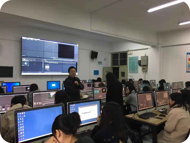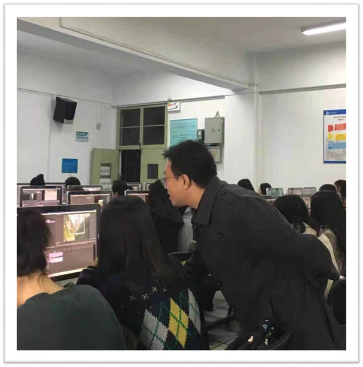 杨老师这堂课的主要内容是“数字音视频处理?——Adobe Premiere Pro的使用”。首先,杨老师通过解答课后同学们在制作“码课”作品过程中遇到的问题来帮助大家回顾学过的知识。通过回答6个小组提出的不同问题,有效的解决了学生在实践过程中遇到的困难和疑惑,加强了同学们自主学习的信心。之后,通过二维码分享了学长的优秀作品,引导同学们扫码在线观看本节课的微课视频。观看结束后,杨老师结合实际操作,耐心细致的讲解作品制作中涉及到的技术关键点和细节要领,指导学生同步进行练习。短短的20分钟教学过程,同学们学会了视频的多层叠加、放缩、擦除变换、关键帧的定位和插入、运动和位置特效的使用等技能。这种在线微视频、跟随式指导和现场动手实践相结合的授课方式也产生了很高的学习效率,即便教育学专业学生的前序知识不多,也能够顺利跟上教学节奏。通过课后交流,发现同学们对技术相关的内容不仅不畏难,反而觉得有兴趣、能学会、还想学。