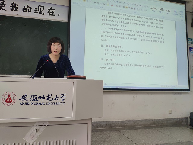 本网讯(教科院 刘淼 张雨怡)为了增进2018级新生与老师的交流,9月26日下午,教科院2018级学前教育专业和中美学前专业在田楼8402召开师生见面会。本次见面会由学前教育专业负责人王路曦和中美学前专业负责人赵学菊主持。参加本次见面会的有学前教育专业任课老师孙德玉,吴玲,张更立,童慧玲,梅养宝,王芬莲,王萍,李晓博,张志华,葛燕等和新生辅导员程啸及2018级学前教育专业和中美学前专业共84位学子。