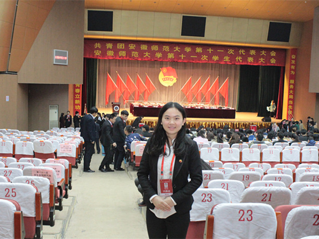 第一年入学,她便竞选了班级团支书,担任至今。在这四年里,她学会了全心全意为班级同学服务。她说:在求职就业中,比较看重团队协作能力。因为一个人走的快,一群人才能走得远。大二的时候,她有幸成为了师大第十一届团学代会的团代表之一,遇见了很多优秀的师长。他们会给你的大学生涯,人生规划带来很多帮助,会让你逐渐认清自我,摆脱初入大学的迷茫。