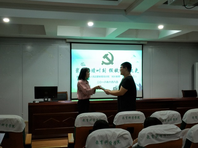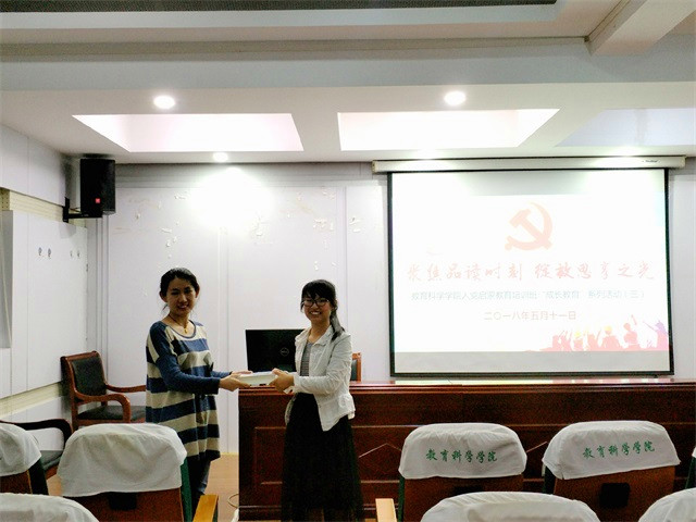 本网讯(教科院 郭俊俏 龚伟)为激发启蒙班同学的阅读兴趣、增强同学们思考的意识和能力、提高其自身素养,近日,以“聚焦品读时刻,绽放思享之光”为主题的“成长教育”活动在学院学术交流中心举行。2017级辅导员谭茹轩老师、四位驻班党员和入党启蒙教育培训班的全体成员参与了本次活动,活动由学前教育专业本科生党支部书记龚伟老师主持。