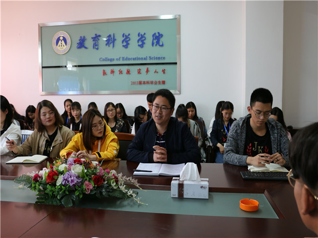 本网讯 (教科院 徐翔 莫大贡)为促进团学工作的发展,4月15日,教科院团委邀请马鞍山师专旅游与外国语团委来院开展经验交流活动。院团委书记莫大贡、马鞍山师专旅游与外国语学院团委书记姚浩以及部分团学骨干参加了交流会。交流会由院学生会主席张照辉主持。