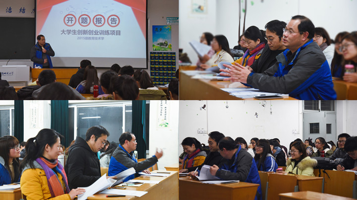 (教科院 文/姜惠玲、魏良 图/冯秦娜) 为落实大学生创新创业训练计划,提升大学生创新能力,提高人才培养质量,我院教育技术学专业于12月17日晚在田楼8504教室召开了“大学生创新创业训练项目开题报告会”。会议由指导教师刘和海主持,高宇和陶佳老师莅临指导,团队成员以及2016级和2017级教育技术学学生均到场旁听学习。