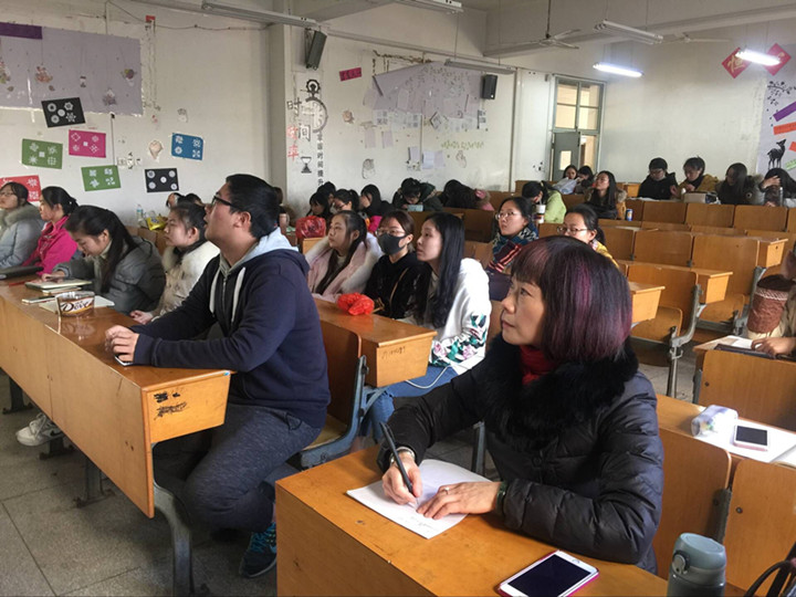 本网讯(教科院 张莺莺)时光荏苒,2016级学前中美的孩子即将踏上赴美学习之路,为做好赴美前的服务工作,12月21日中午,校卡迪夫国际预科中心朱芮老师来到8101与16学前中美的同学就如何办理赴美签证进行了交流。该专业负责人赵学菊及辅导员马兴参加了此次交流会。