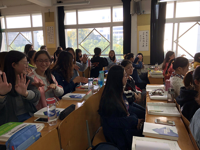 本网讯(教科院 姜雪)2017年11月2日下午,在田楼8202教室,赵学菊老师邀请芜湖市环城南路幼儿园的徐悦园长走进2015级学前本科课堂,结合《学前儿童音乐教育》课程为同学们带来一场生动活泼的实践教学。