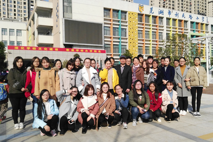 本网讯(教科院 常欣)11月23日下午,我院教育技术学2016级本科班全体同学在系主任张克松老师和协同中心信息技术实验区指导专家陶佳老师带领下,来到安徽省教师教育协同创新中心信息技术实验学校芜湖市利民路小学开展教育见习活动,共同观摩了利民路小学汪宏副校长的小学五年级数学《多边形内角和》教学公开课。