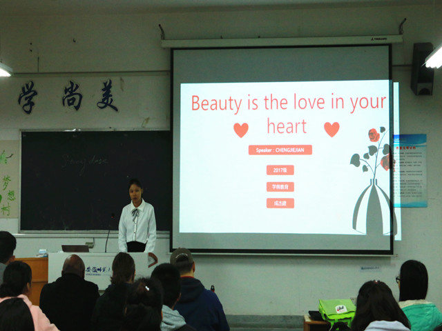 本次比赛分为Beauty in my life主题演讲、现场提问和才艺展示三个环节。比赛场上,九位参赛者用标准的英语发音和良好的语言组织能力获得阵阵掌声,展现出教科学子青春激昂的风采。Eugene教授与、Mandy老师、Alex老师分别对选手讲演内容进行细致提问,期间选手对答妙语连珠,流利的英语让全场的气氛欢快而轻松。才艺展示时,各位演讲者大显身手,英语演唱唯美动听,英译对话妙趣横生,动感舞蹈引爆全场……
