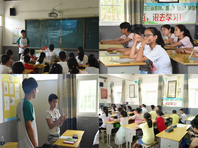 团队来自物理与电子信息的两位志愿者:庄宇、李鑫为了上好这节物理实验课,备课花了整整三天的时间。对反复的实验选择、教案设计、教学环节安排、课件修订、实验器材制作等多项课堂内容反复推敲。7月11日,他们作为一个物理师范生,正式站上讲台给孩子们上一节物理课。经过两人的探讨,一致认为面对支教学生学龄层次不均衡的现状,物理课应该将主要目的放在让学生提前认识和适应物理课程,初步接触科学思维方式。