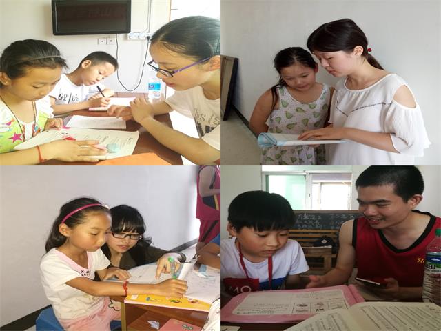 2017年6月26日,团队来到明光市嘉山村开展志愿支教服务活动。在为期12天的支教中,队员们帮助嘉山村的孩子辅导暑假作业,解决课业上的难题。“老师,你快来,我有一个问题。”课堂上学生们踊跃举手向志愿者询问课业难题。“看到学生难题被解决时露出的笑脸,我感觉我来到这儿支教是值得的”,队员樊诗丽这样感慨道。放学后家长们不能及时赶来,队员们就继续在教室里辅导学生作业,与学生一起等待家长。有些学生家长由于工作繁忙无法接孩子,队员们就牵起学生的手送他们回家。“老师,我妈妈今天不能来接我了。”“来,老师送你回家。”这样的对话经常发生在教室里。