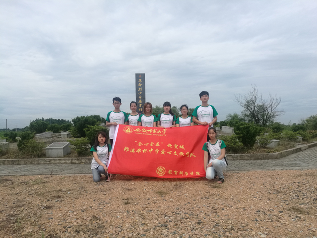 本网讯(教科院 龚泽慧)7月9日上午8点半,结束了一周教学工作的“全心全益”宣城郎溪毕桥支教团队准时集结在毕桥中学门口,准备出发前往夏雨初烈士陵园开始这段红色之旅。