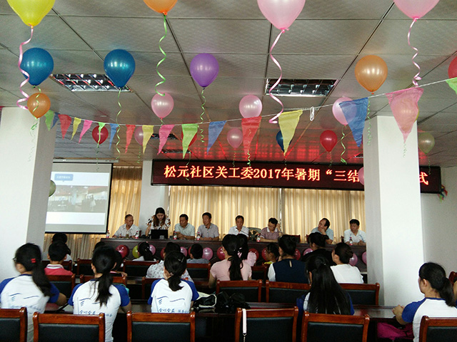 启动仪式在胡副主任的宣读声中拉开了序幕。胡副主任通过网络多媒体为大家介绍了暑期“三结合”活动概况及往年的活动情况。此外,胡主任还以两道数学几何题为例表明活动的宗旨——帮助孩子更好地开拓思维。随后松元社区关工委宋主任发表讲话,从宋主任的讲话中大家感受到社区对本次活动的重视。参与社区暑期活动的学生代表上台发言,表达了对社区领导和老师的感谢,学生家长代表的讲话也表示出对社区暑期活动的大力支持以及对各位领导、老师以及志愿者最真诚的谢意。