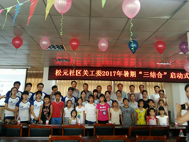 本网讯(教科院 王若帆 俞文轩)青春奋斗勇开拓,携手共筑中国梦。7月5日上午9点,教科院“全心全益”赴芜湖市马塘小学心理健康教育调研团队参加了在松元社区服务中心召开的松元社区关工委2017年暑期“三结合”启动仪式。参加本次仪式的有马塘小学张校长、弋江区爱邻社会工作服务中心周会长、松元社区关工委宋主任、松元社区关工委胡副主任及参与活动的部分学生和学生家长。本次启动仪式在松元社区关工委胡副主任主持下顺利召开。