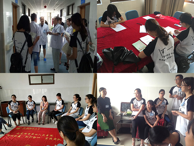 下午团队则来到了芜湖第四人民医院,简略观察了一下医院,并由一位主任为团队简单介绍了医院的项目情况和注意事项。在后来与医生的交流中,队员们初步了解了一些心理测试的内容和治疗心理疾病的方法。最后医生把团队分成三组,将在第二天开始带领团队正式开始实践。
